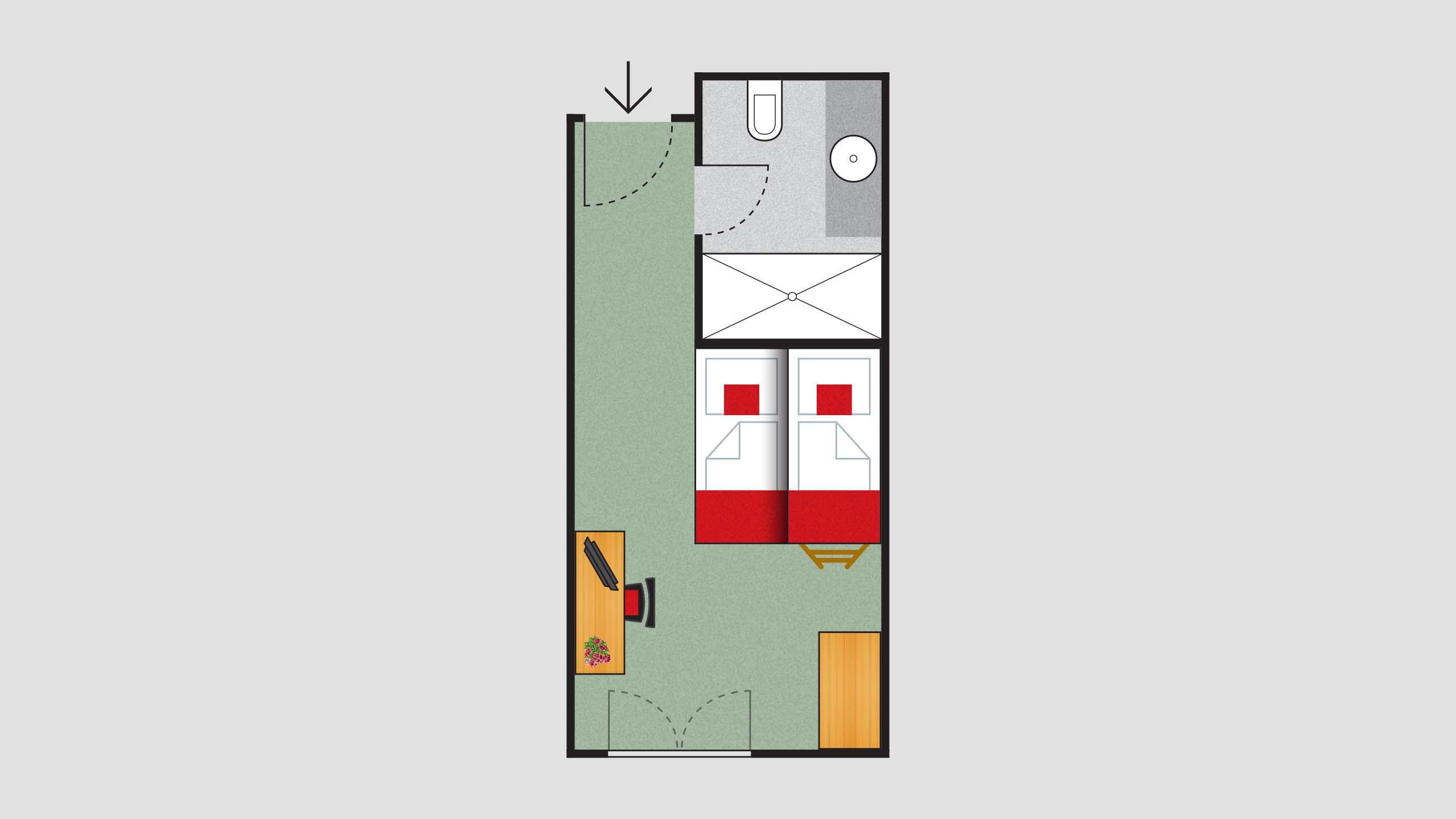 Zusätzlich bietet das Zimmer einen Kleiderschrank, einen Flachbildschirm mit SAT-TV, kostenfreies WLAN und einen Safe.